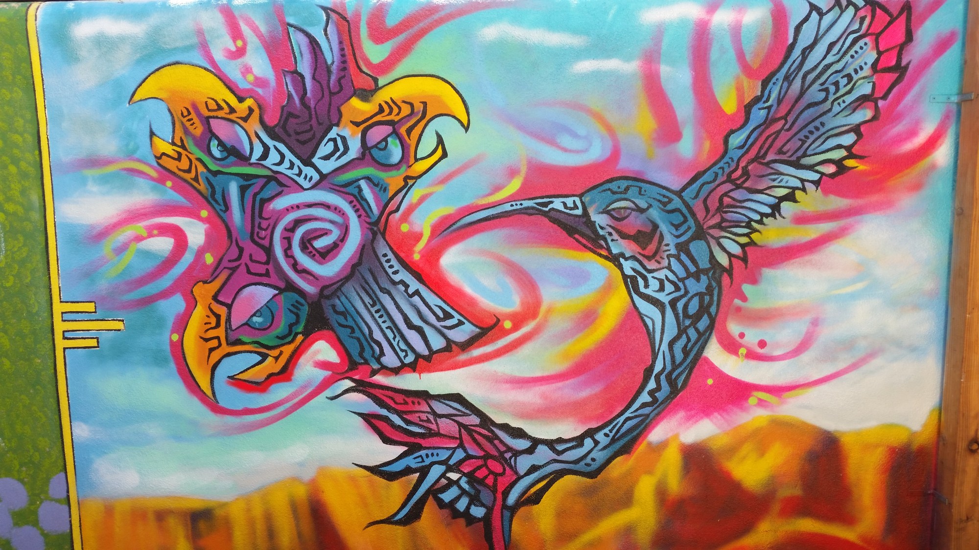 Mural Design Israel Haros Main Lead Artist, Israel Haros, Juan Lira, John Paul Granillo 9 feet by 12 Feet Mural on Archival Tyvek 50 percent of the Sale Goes To New Mexico Mural Project 50 percent goes to the Artists $4,000